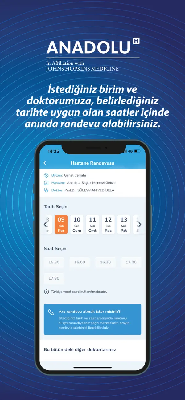 İstediğiniz doktorundan anında hastane randevusu alabilirsiniz.