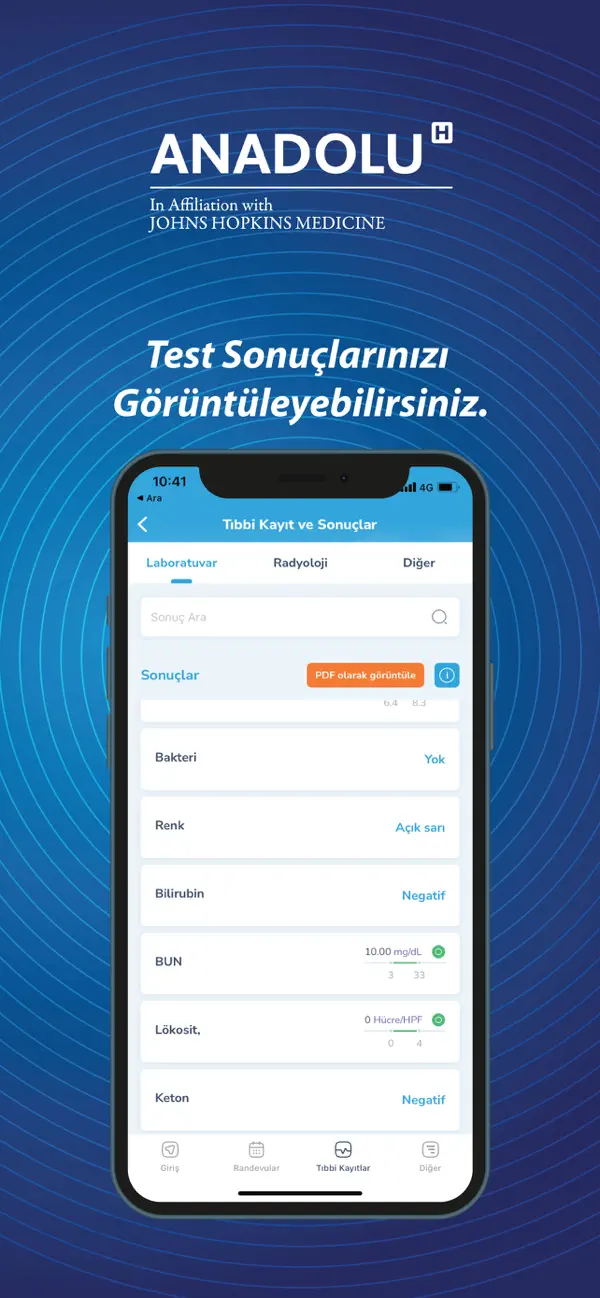 Test sonuçlarınızı ve görüntüleme sonuç raporlarınızı sıra beklemeden, hastaneye gelmeden kolayca görüntüleyebilirsiniz.